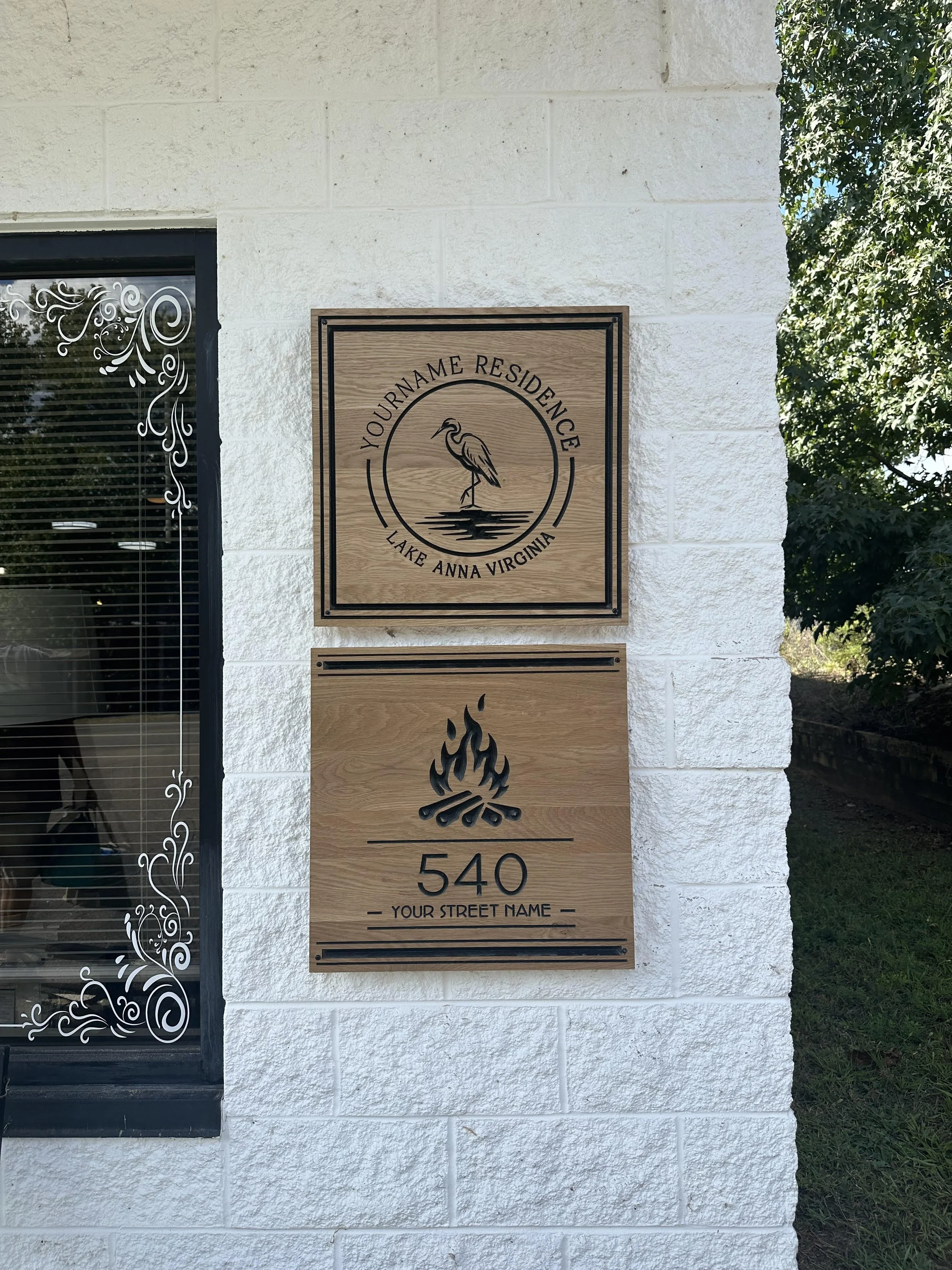 Personalize your home’s entry with unique signage. Constructed from solid White Oak and finished with a spar urethane finish coat, these signs are designed, fabricated, and finished in our studio in Arlington, VA.